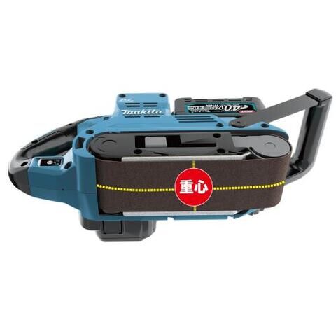 バッテリを前方に配置し、重心位置をベルトの中心にすることで、研削ムラを低減し安定したサンディングが可能。