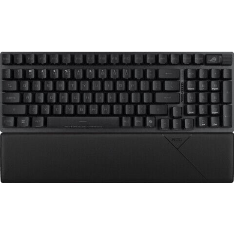 - 内容物:1 x ROG Strix Scope II 96 RX Wireless、1 x wrist rest、6 x ROG-themed keycaps、1 x Ctrl keycap、1 x ROG keycap puller、1 x wireless receiver、1 x USB extender、1 x USB cable、1 x ROG sticker、1 x quick start guide、1 x warranty booklet