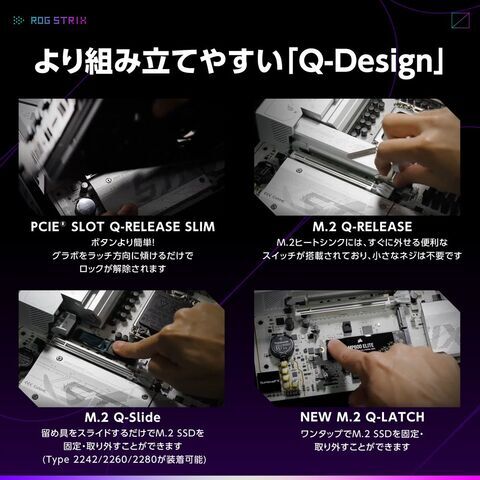 ◆DIY フレンドリー:PCIe Slot Q-Release Slim、Wi-Fi Q-Antenna、M.2 Q-Release、M.2 Q-Latch、M.2 Q-Slide、Q-LED、ClrCMOS、BIOS FlashBack、Q-Dashboard、START BUTTON