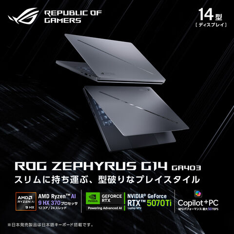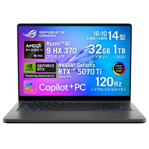 ASUS|エイスース 14型 ゲーミングノートパソコン ASUS ROG Zephyrus G14 (AMD Ryzen AI 9/ メモリ 32GB/ SSD 1TB/ GeForce RTX 5070Ti)エクリプスグレー GA403WR-AI9R5070TIG 【返品種別A】