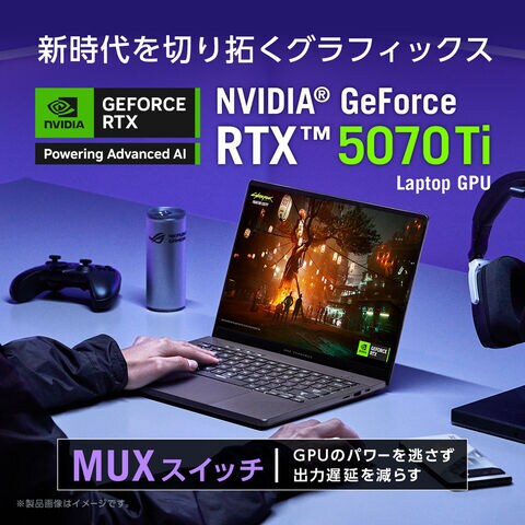 - グラフィックス : NVIDIA GeForce RTX 5070 Ti Laptop GPU (NVIDIA Optimus Technology対応) (最大110W)