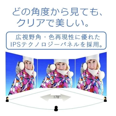 IPS ディスプレイは、標準的な TN パネルと異なり、画像を鮮やかな色彩でくっきりと表示します。