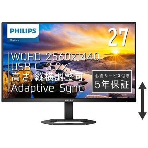 Philips|フィリップス 液晶ディスプレイ(27型/IPS/WQHD 2560×1440/75Hz/1ms/HDMI1.4/DP1.2/USB Type-C/VESA/5年保証)(ブラック) 27E1N5600E/11 【返品種別A】