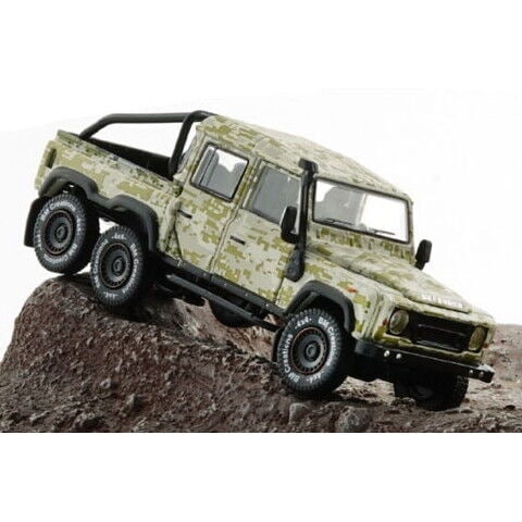 BM CREATIONS 1/64 ランドローバー 2016 ディフェンダー 110 ピック アップ 6x6 アクセサリーパック カモフラージュグリーン RHD です。