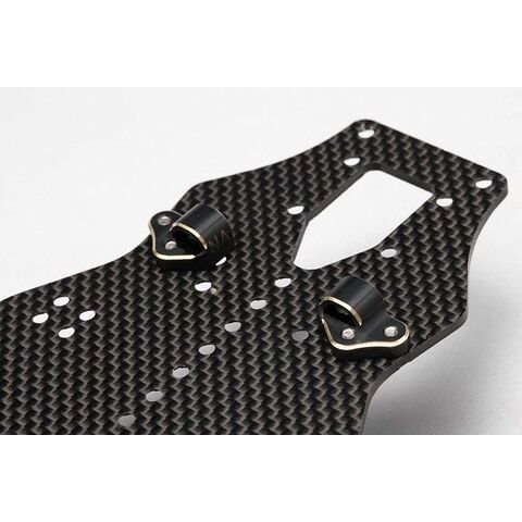 標準のアルミ製に比べると両側で約6g重量が増し、メインシャーシのスペースを犠牲にすることなく重量増が可能です。