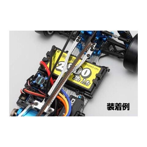 ヨコモLi-po YB-P228BE YB-P216BE等にフィットするサイズですが、厚みのあるケースサイズのバッテリー等を使用する場合は、シャーシとの間にスペーサー(DRB-118LS)を挟むことで調整可能です。