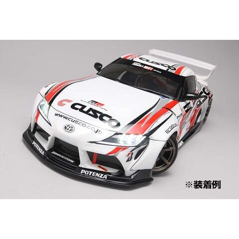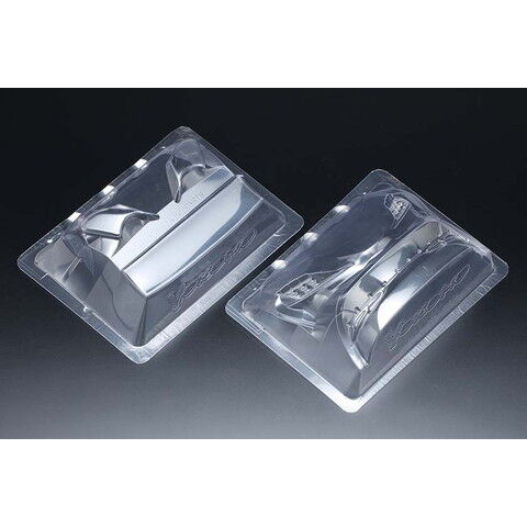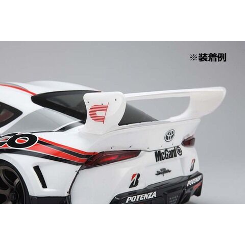 ヘッドライトとテールライトのブラケット、そして4分割のリヤウイングが付属していますが、比較的加工しやすい素材で、もちろんポリカーボネート用塗料で塗装を施すことも可能です。