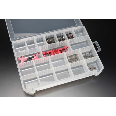 比較的細かいパーツの収納に適しており、移動式の仕切り板の枚数が多めで、仕切る位置も細かく設定できるようなっているのが特徴です。