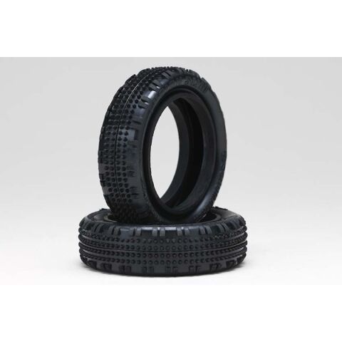 マイクロテーパーピンとショルダーのブロックパターンを組み合わせた、2WD オフロードカー用のフロントタイヤです。