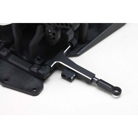 43.5mm幅のサスマウントに対応したショートアームで、T字形状とすることでステアリング時のフロントタイヤとの干渉を避けています。