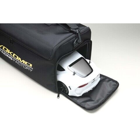 ドリフトカーやスピードカーのマシンと送信機、充電器やパーツなどをまとめて収納可能なピットバッグです。取っ手や長さ調整可能なショルダーベルトも付いて持ち運びにも便利で、サーキットへ行く際にもコンパクトで運びやすいサイズです。