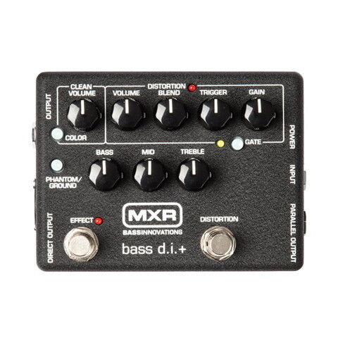 Bypass、Distortionスイッチ、EQ(CL/DS):Bass/Mid/Treb、Collor(プリセットEQ)、Clean Volume(CL)、Gain(DS)、Distortion Volume(DS)、Blend(DS)、Gate Trigger(DS)=ノイズフロア・スレッショルド、Gateスイッチ(DS)、Phantom/Groundスイッチ(XLR)
