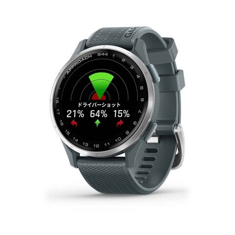 Approach S44は、ゴルフのラウンドではスコアアップに役立ち、スタイリッシュなデザインで日常シーンでも使えるゴルフGPSウォッチのスタンダードモデルです。