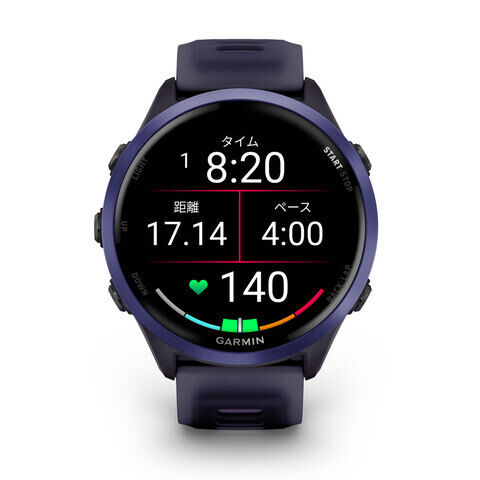 スポーツアクティビティ機能は、ランニングに加え、トライアスロン、サイクリング、筋トレ、ヨガ、スイム、ゴルフ、HIIT(高強度インターバルトレーニング)など100種類以上の豊富なスポーツに対応しています。ヘルスケア機能は、心拍数、呼吸数、ストレス、睡眠スコア付き睡眠モニタリング、体のエネルギー状態を数値化する独自の指標Body Battery、血中酸素トラッキングなど、健康状態を確認できます。