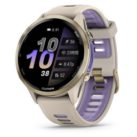 スポーツアクティビティ機能は、ランニングに加え、トライアスロン、サイクリング、筋トレ、ヨガ、スイム、ゴルフ、HIIT(高強度インターバルトレーニング)など100種類以上の豊富なスポーツに対応しています。ヘルスケア機能は、心拍数、呼吸数、ストレス、睡眠スコア付き睡眠モニタリング、体のエネルギー状態を数値化する独自の指標Body Battery、血中酸素トラッキングなど、健康状態を確認できます。