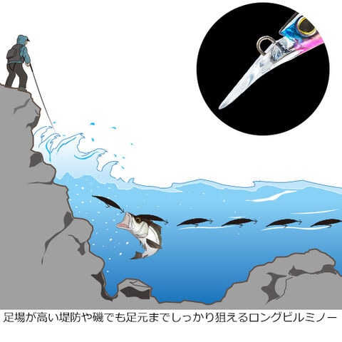 足場が高い堤防や磯でも足元までしっかり狙えるロングビルミノー