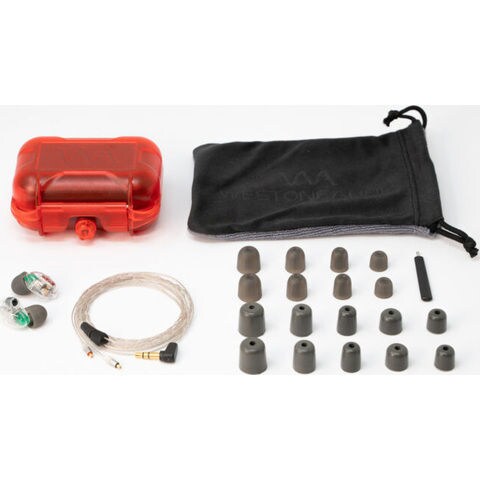 - 付属アクセサリー:Linum Bax T2TM 【着脱式ケーブル】、STARTMシリコンイヤーチップ【 5 サイズ】、TRUE FITTMフォームイヤーチップ【 5 サイズ】、Mini Monitor Vault II イヤホンケース、クロスバッグ、クリーニングツール