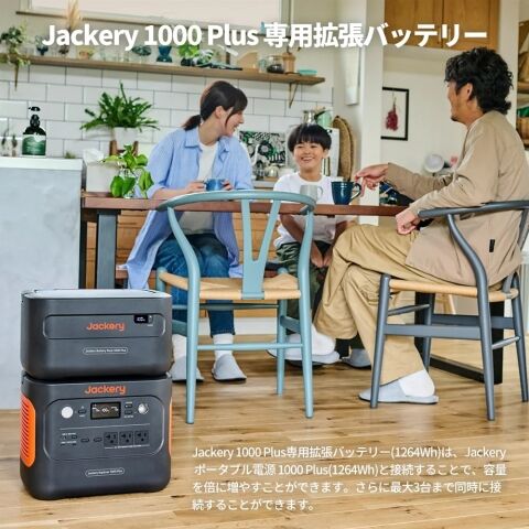 Jackery 1000 Plus 専用拡張バッテリーは、1264WhのJackery ポータブル電源 1000 Plus(別売)と接続することで、