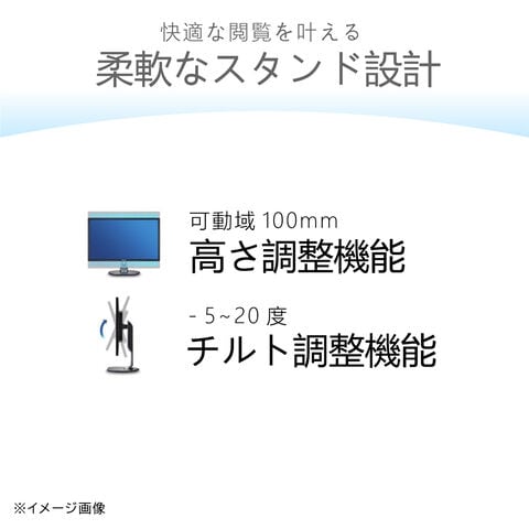 - チルト/高さ調整/スイーベル/ピボット : -5~20度/100mm/なし/なし