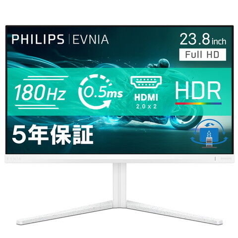 Philips|フィリップス ゲーミング液晶ディスプレイ(23.8型/Fast IPS/FullHD 1920×1080/180Hz/1ms/HDR10/HDMI2.0/DP1.4/VESA)(ホワイト) EVNIA Gaming 24M2N3201A/11 【返品種別A】