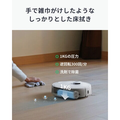 1kg の圧力で床を拭き、RevoRoll 逆回転技術と組み合わせて頑固な汚れも効果的に除去します。