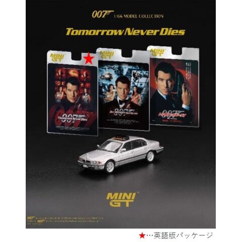 MINI-GT 1/64 BMW 750IL「トゥモロー・ネバー・ダイ」(1998)英語版パッケージ です。