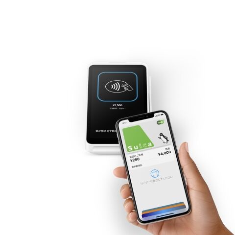 お客様はICカードやデバイスをカード決済端末にかざすだけで決済できます。