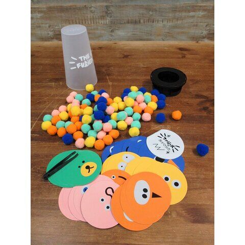 成功したら次のプレイヤーの手番になりますが、毛玉が落ちてしまったら、落ちた毛玉の数と同じ枚数のカードを引かなければならず、引いたカードに記載されているチャレンジ(例えば「片目を隠しながら毛玉を取る」など)が次の手番で課せられます。