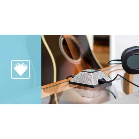 SSL Connexは、ピラミッド型の各側面に配置された4つのマイクカプセルを持ち、クアッドマイクアレイを形成しています。用途に応じた音声処理モードが利用可能です。