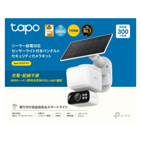TP-Link(ティーピーリンク) ソーラー給電対応センサーライト付きパンチルトセキュリティカメラキット Tapo C615F KIT TAPOC615FKIT 【返品種別A】