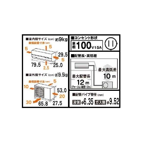 ・室外機:幅658(+配管カバー部60)×高さ530×奥行275(+脚部54.5)mm - 質量…