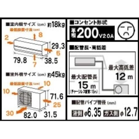 ・室外機:幅820(+配管カバー部68)×高さ716×奥行315(+脚部38)mm - 質量…