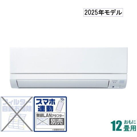 三菱 【2025年モデル】【標準工事セットエアコン】 霧ヶ峰 おもに12畳用 (冷房:10~15畳/暖房:9~12畳) GEシリーズ (ピュアホワイト) MSZ-GE3625-W 【返品種別A】