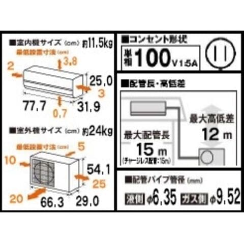・室外機:幅663(+配管カバー部68)×高さ541×奥行290(+脚部63)mm