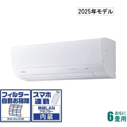 ハイアール 【2025年モデル】【標準工事セットエアコン】 huu(フー) おもに6畳用 (冷房:6~9畳/暖房:5~6畳) MXシリーズ(ホワイト) JAA-MX225A-W 【返品種別A】