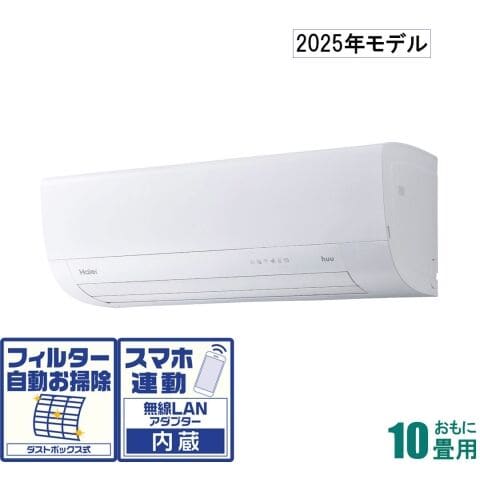 ハイアール 【2025年モデル】【標準工事セットエアコン】 huu(フー) おもに10畳用 (冷房:8~12畳/暖房:8~10畳) MXシリーズ(ホワイト) JAA-MX285A-W 【返品種別A】