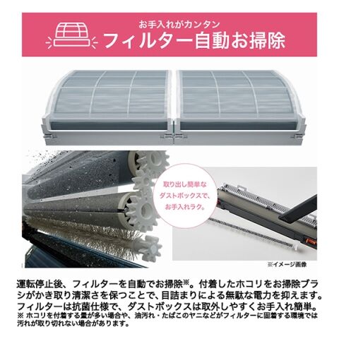 付着したホコリをお掃除ブラシがかき取り清潔さを保つことで、目詰まりによる無駄な電力を抑えます。
