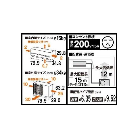 ・室外機:幅799(+配管カバー部68)×高さ632×奥行290(+脚部63)mm - 質量…