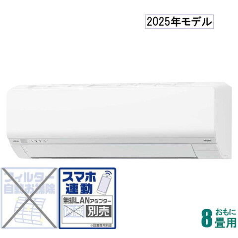 富士通ゼネラル 【2025年モデル】【標準工事セットエアコン】nocria ノクリア おもに8畳用 (冷房:7~10畳/暖房:6~8畳) Lシリーズ AS-L255S-W 【返品種別A】