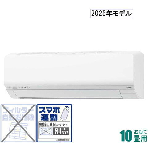 富士通ゼネラル 【2025年モデル】【標準工事セットエアコン】nocria ノクリア おもに10畳用 (冷房:8~12畳/暖房:8~10畳) Lシリーズ AS-L285S-W 【返品種別A】