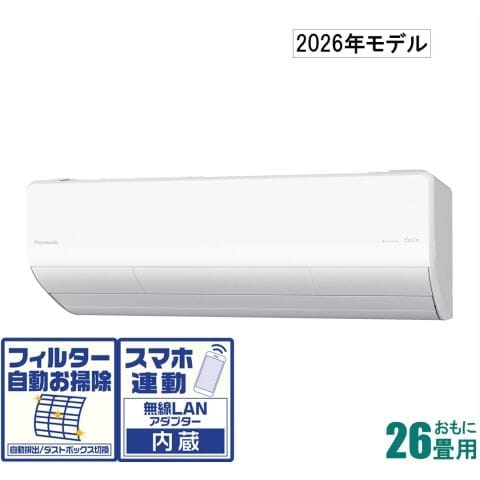 パナソニック 【2026年モデル】【標準工事セットエアコン】 寒冷地対応エアコン フル暖エオリア おもに26畳用 (冷房:22~33畳/暖房:21~26畳) UXシリーズ 電源200V(クリスタルホワイト) CS-UX806D2-W 【返品種別A】