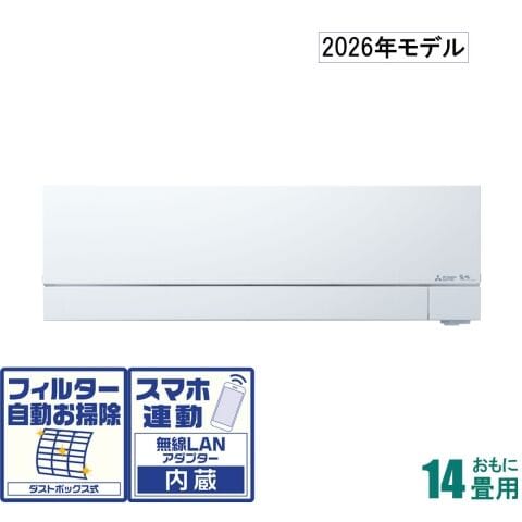 三菱 【2026年モデル】【標準工事セットエアコン】 霧ヶ峰 おもに14畳用 (冷房:11~17畳/暖房:11~14畳) FZシリーズ 電源200V (ピュアホワイト) MSZ-FZ4026S-W 【返品種別A】