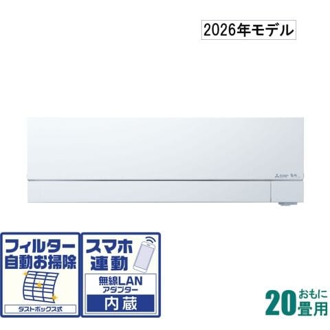 三菱 【2026年モデル】【標準工事セットエアコン】 霧ヶ峰 おもに20畳用 (冷房:17~26畳/暖房:16~20畳) FZシリーズ 電源200V (ピュアホワイト) MSZ-FZ6326S-W 【返品種別A】