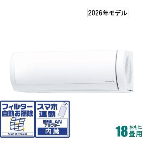 ゼネラル 【2026年モデル】【標準工事セットエアコン】 nocria(ノクリア) おもに18畳用 (冷房:15~23畳/暖房:15~18畳) Xシリーズ 電源200V AS-X566T2-W 【返品種別A】
