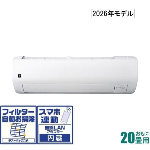 シャープ 【2026年モデル】【標準工事セットエアコン】プラズマクラスター25000搭載 おもに20畳用 (冷房:17~26畳/暖房:16~20畳) Vシリーズ 電源200V AY-U63V2 【返品種別A】