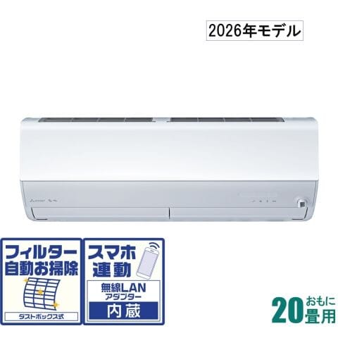 三菱 【2026年モデル】【標準工事セットエアコン】 霧ヶ峰 おもに20畳用 (冷房:17~26畳/暖房:16~20畳) Xシリーズ 電源200V (ピュアホワイト) MSZ-X6326S-W 【返品種別A】
