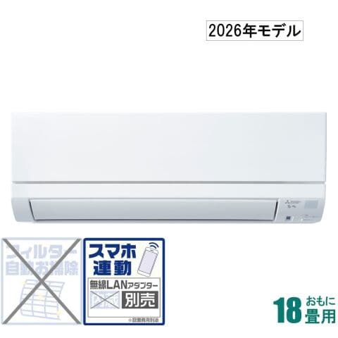 三菱 【2026年モデル】【標準工事セットエアコン】 霧ヶ峰 おもに18畳用 (冷房:15~23畳/暖房:15~18畳) GEシリーズ 電源200V (ピュアホワイト) MSZ-GE5626S-W 【返品種別A】
