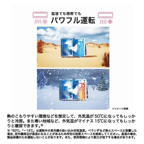 ◆外気温度50℃冷房、-15℃暖房運転