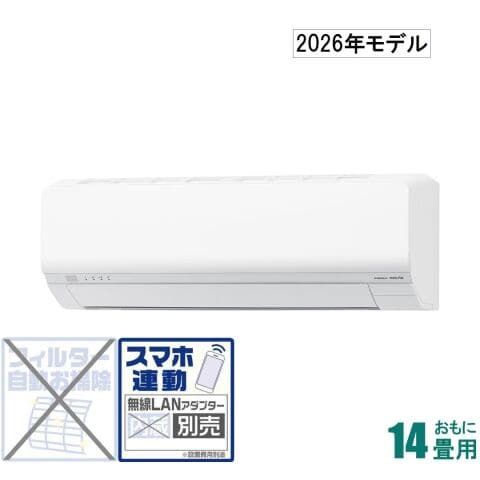 ゼネラル 【2026年モデル】【標準工事セットエアコン】nocria(ノクリア) おもに14畳用 (冷房:11~17畳/暖房:11~14畳) Lシリーズ 電源200V AS-L406T2-W 【返品種別A】