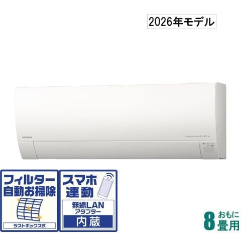 日立 【2026年モデル】【標準工事セットエアコン】 白くまくん おもに8畳用 (冷房:7~10畳/暖房:6~8畳) Gシリーズ (スターホワイト) RAS-GR2526S-W 【返品種別A】